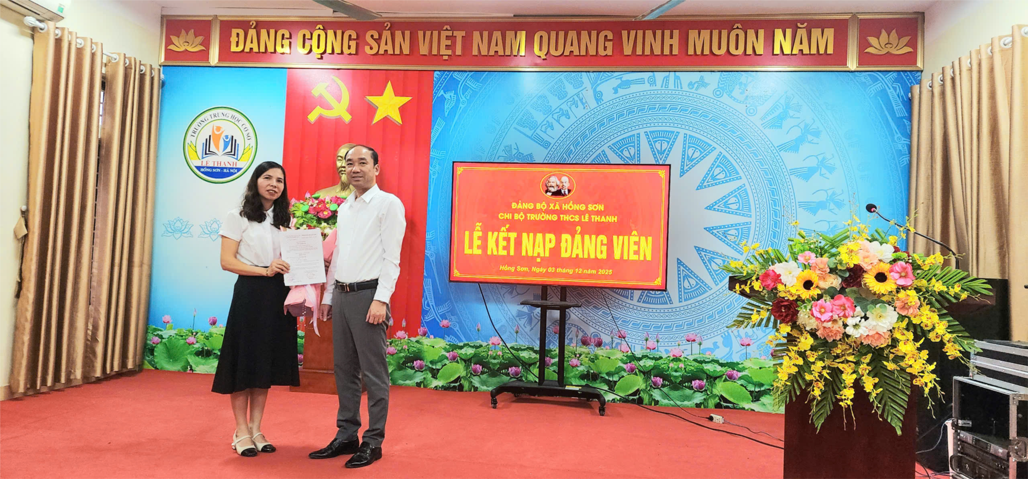 Buổi lễ kết nạp Đảng viên của Chi bộ trường THCS Lê Thanh đã thành công tốt đẹp, theo đúng Điều lệ Đảng.