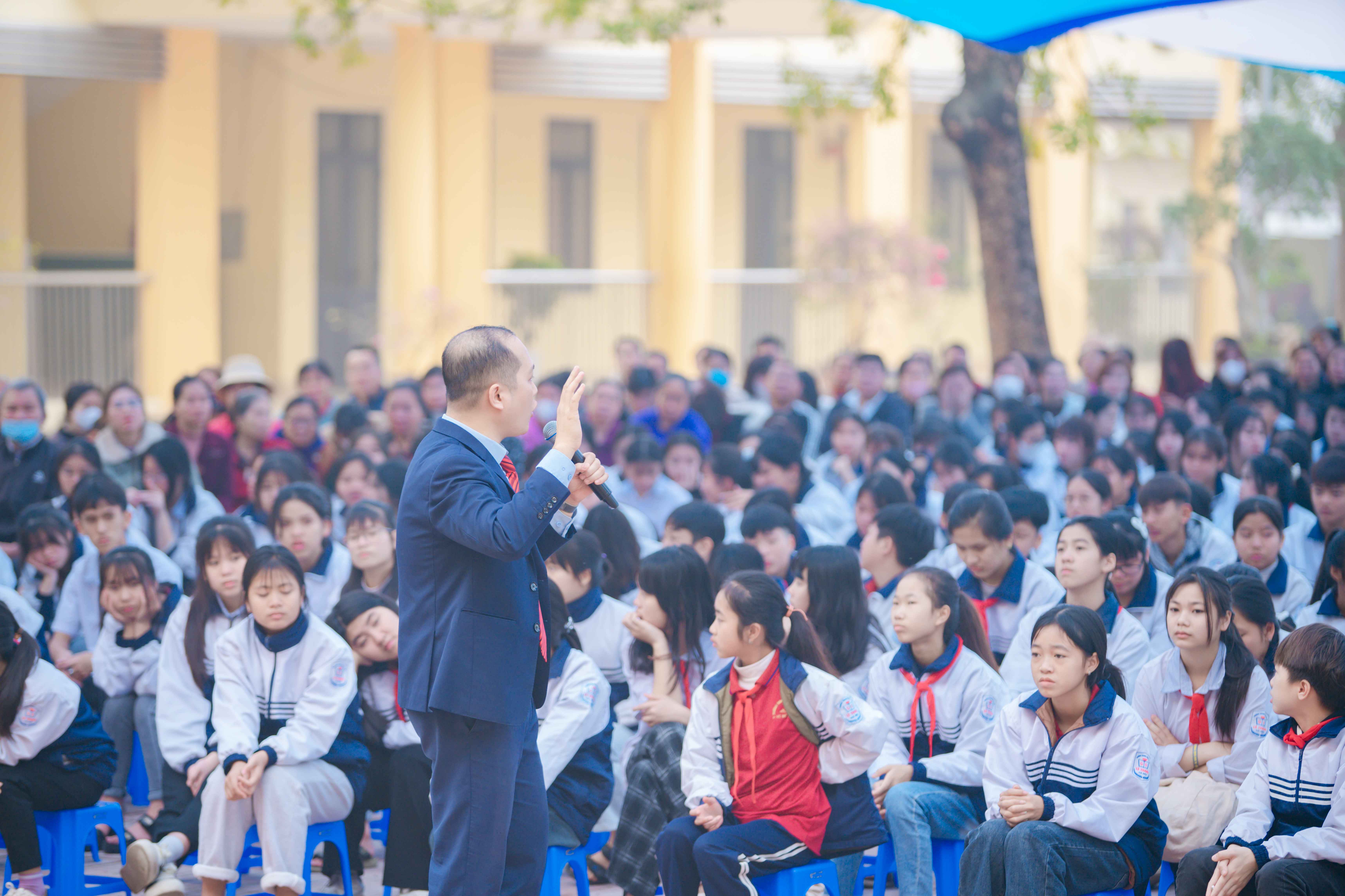 Chính vì lý do đó, sáng ngày 01/3/2025 trường Trung học cơ sở Lê Thanh tổ chức buổi hoạt động ngoại khóa Giáo dục Kỹ năng sống với chủ đề “Lòng yêu thương – Chìa khóa mở lối tương lai” do Diễn giả Đỗ Thái Đăng – Nhà đào tạo Quốc tế ABNLP, chuyên gia truyền cảm hứng giáo dục chia sẻ. Diễn giả Thái Đăng đã cho học sinh trải nghiệm nhiều nội dung thú vị, hấp dẫn và vô cùng ý nghĩa.