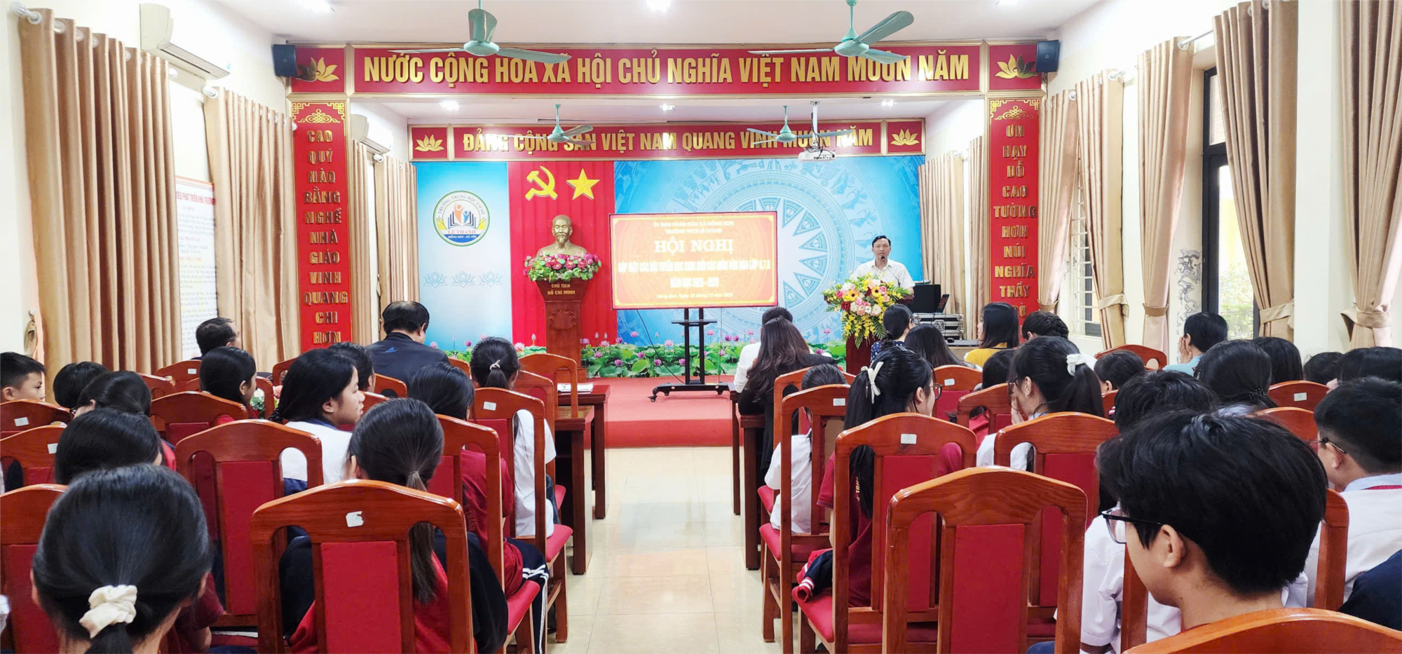 Nhằm động viên tinh thần, định hướng mục tiêu và tạo động lực cho các đội tuyển học sinh giỏi, chiều nay, ngày 22/12/2025 Trường THCS Lê Thanh đã long trọng tổ chức Hội nghị gặp mặt các đội tuyển học sinh giỏi các môn văn hóa khối 6, 7, 8 năm học 2025 – 2026. Tham dự Hội nghị có Thầy Phạm Trọng Bình – Phó Bí thư Chi bộ, Phó Hiệu trưởng Nhà trường, thầy Nguyễn Hữu Thịnh - Phó Hiệu trưởng Nhà trường cùng toàn thể các thầy cô giáo trực tiếp ôn luyện các đội tuyển và các em học sinh tiêu biểu được lựa chọn tham gia đội tuyển học sinh giỏi các môn văn hóa.